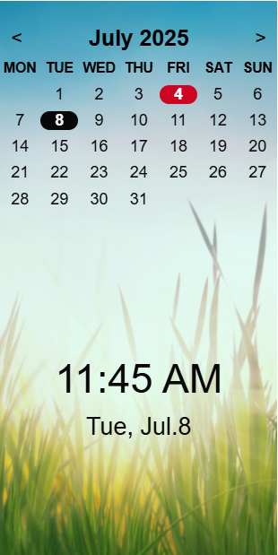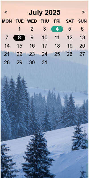 Add an Interactive Calendar to Your Blog or Website for Free/ Free Holiday Calendar Widget for Websites and Blogs Easily embed interactive calendar widgets into your website or blog. Use the customization botton to tailor the widget's appearance to fit your layout and preferences. You can select a country to show holiday information as tooltips. Choose from the available background images or upload your own - just ensure it's resized to 310x619 pixels for portrait and 623x314 pixels for landscape provide the image URL.
